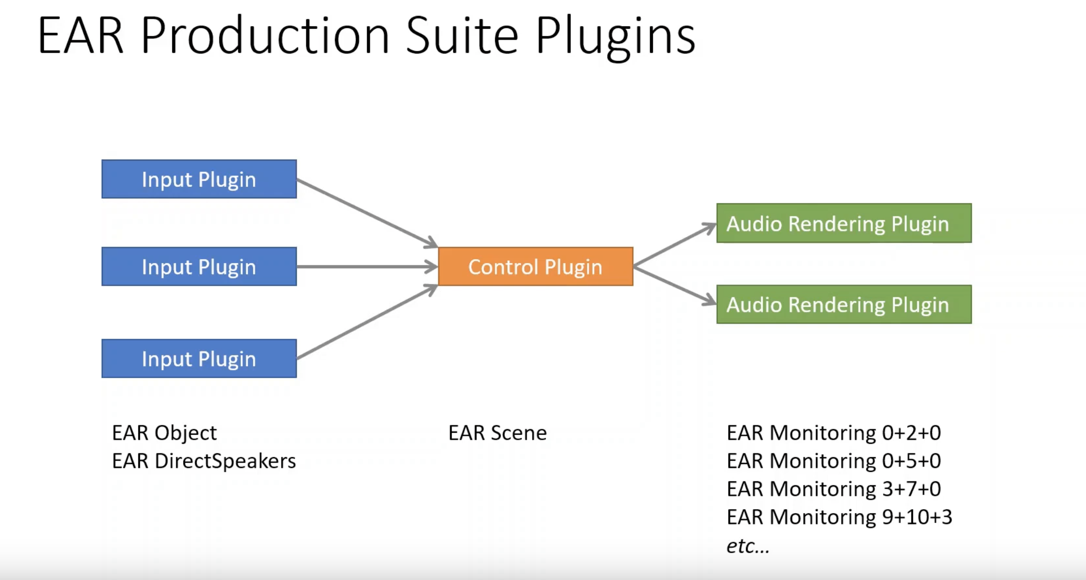 - This can be fed by any number of input plugins and feed any number of rendering plugins the available input plugins are ear object and eardirect speakers which are used for the adm objects and direct speakers type definitions respectively the central control plugin is called the ear scene this receives metadata from each one of the input plugins and has audio routed to it on specifically allocated channels from each input plugin it provides a user interface for authoring the adm structure and passes this collated metadata onto the rendering plugins the audio is also routed through to the rendering plugins.