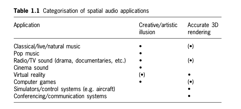 Applications of spatial audio
