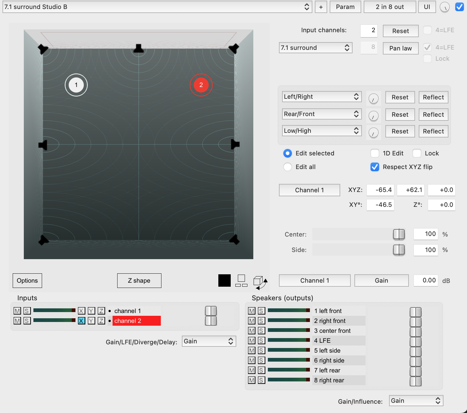 For example to left front will move both pucks to the left front speaker when turned up from where they were before. This is a helpful way to only have to automate one parameter.