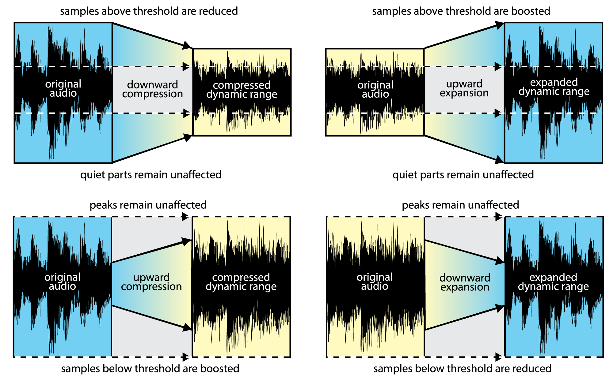 This image shows how compression affects the dynamic range, balancing the loud and quiet moments of a signal.