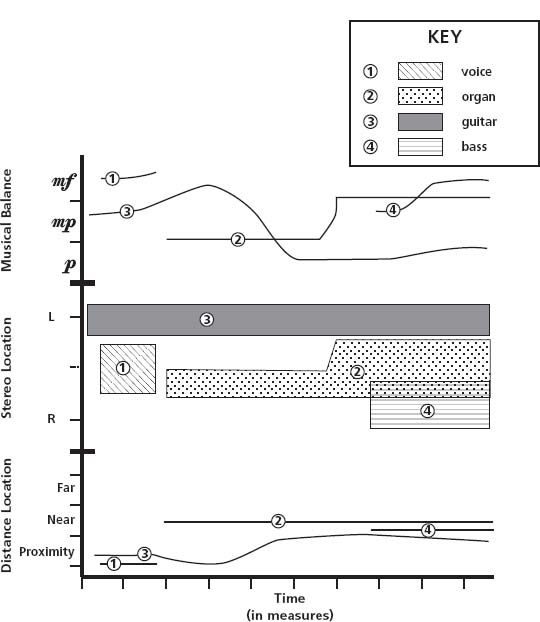| Time | Timeline of song; with structure, phrase, and text indications |