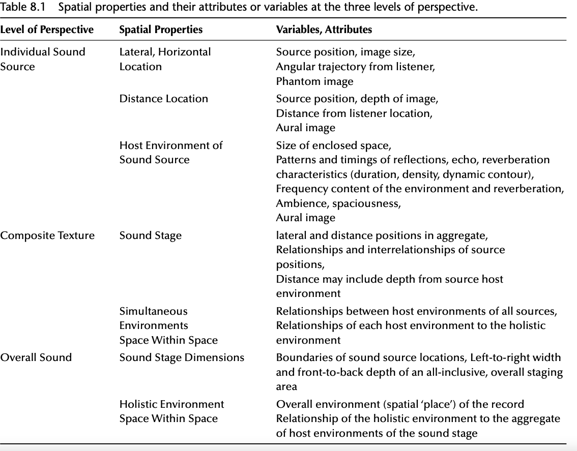 - Spatial properties shape a track’s sound alongside timbre